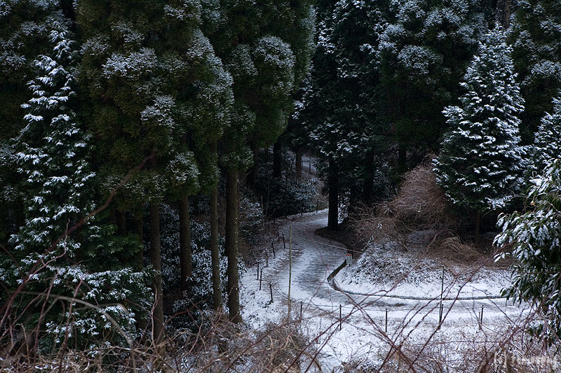 凍死しないように沢山着込んで、カメラを抱えて滝への道を歩く。