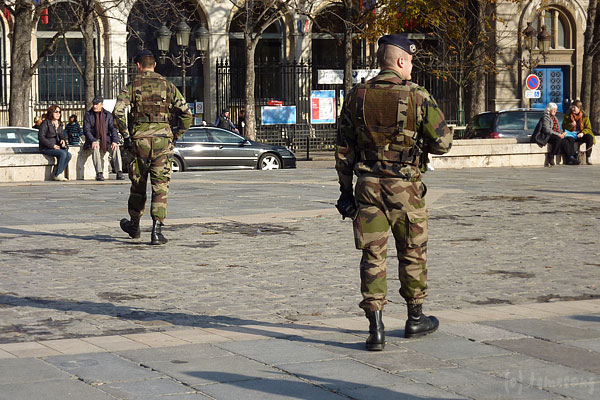 テロの恐れがあるということで、警戒態勢中。本物の機関銃を抱えて歩いてますがな!