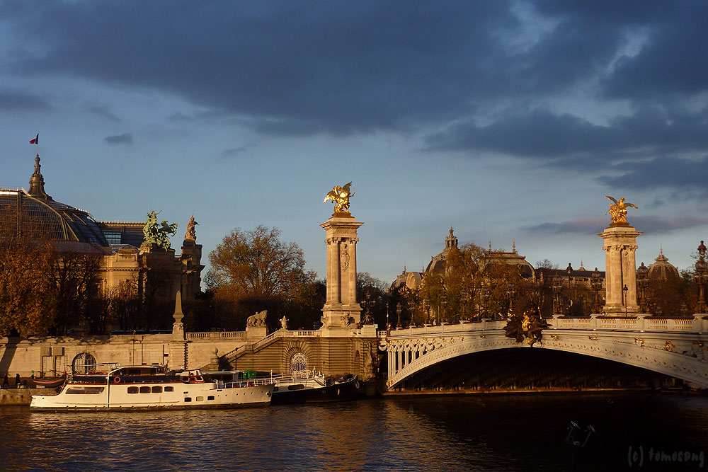 アレクサンドル三世橋にいた時点で凄かった夕焼けがさらに激しく金色になる。
