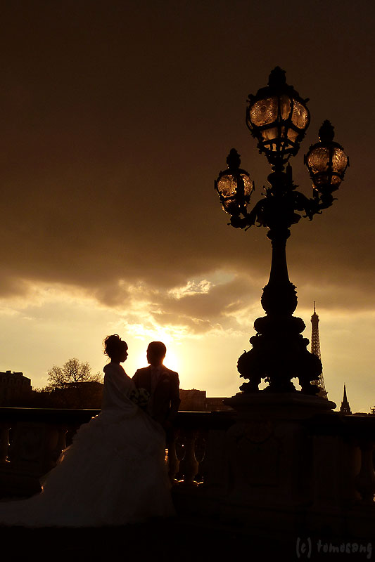 橋を通って川を渡っているとブライダル写真を撮影しているカップル。日本人の様だったけど実際はどうだかわからない。プロカメラマンの横で勝手に撮影する俺。