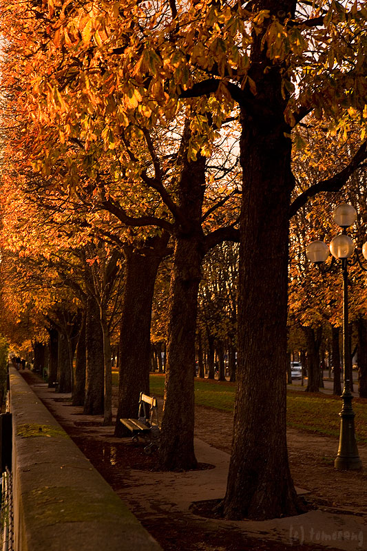 日没も近いようだし、川沿いの並木道を通ってエッフェル塔へ向かう。