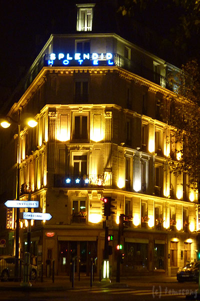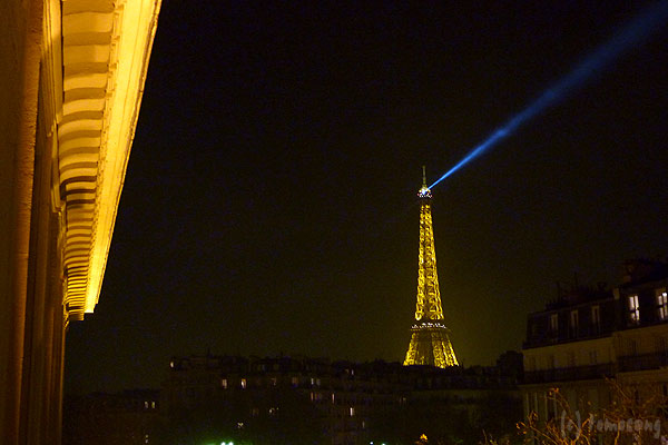 ホテル到着。エッフェル塔から見下ろしてもこのホテルだけライトアップされて目立っていた。