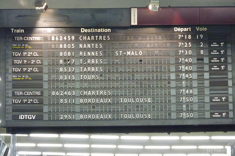 ローマでもそうだったけど、ここパリでも列車は時間前にならないと発着ホームが決まらない。時刻表はあるけどホームの欄はブランクのまま。まだ40分程時間があるので、掲示板下で待っていても暫く表示はされない。駅構内をうろつきまくる。