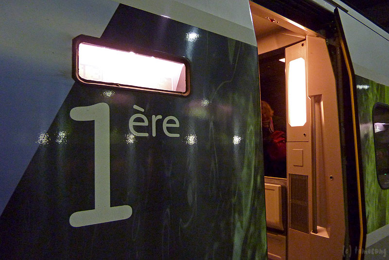 でも時間をずらしたおかげで、バスの乗り継ぎに適した時刻の便より安くチケットが手に入った。乗り継ぎに便利な時間帯のチケットは2等席が44ユーロに対し、自分が乗ったのは1等席で34ユーロ。もちろんこの便の2等席を選べばさらに安い。違いを比較したかったので1等席を選んでみた。