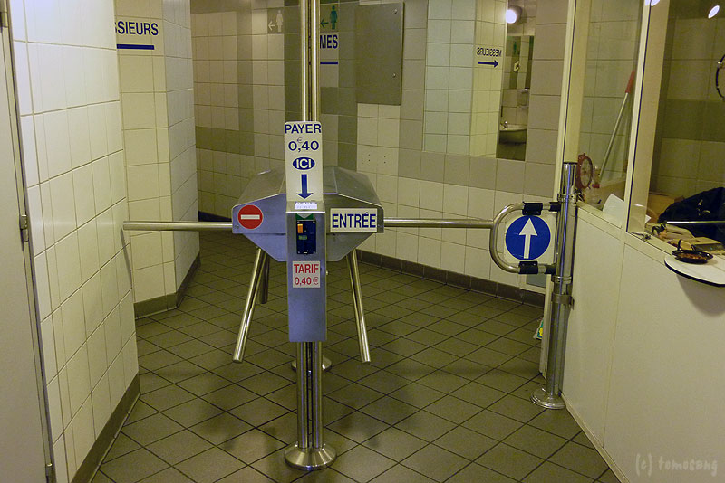 駅構内のトイレは有料。切れているけど右側の部屋にはおばさんがいる。お掃除係兼監視員でしょうか。