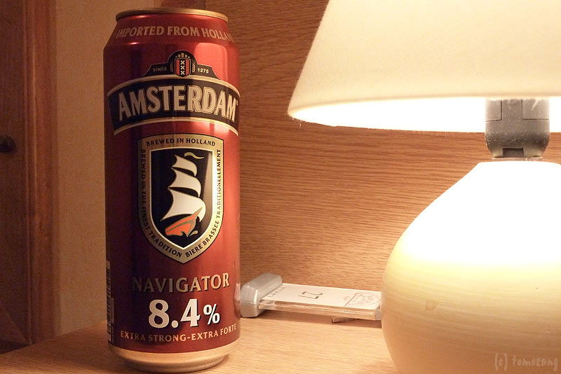 これはオランダ産ビール。口に合わず少しだけ飲んで流しに捨てる。