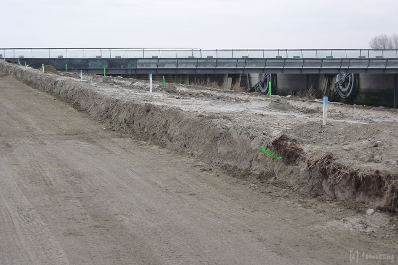 当初2010年には完了する予定だったが、今の所工期は2015年まで延びる見通しということだ。私が訪れた11月下旬、ダムと駐車場の工事が行われており、堤防撤去や橋の工事は全く始まっていなかった。