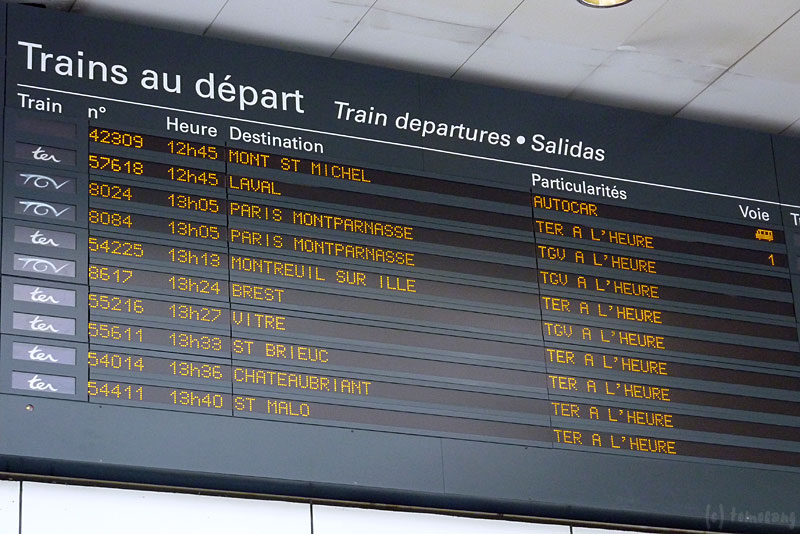TGVの出発時間まで約40分。やはりホームの番号はまだ表示されていない。