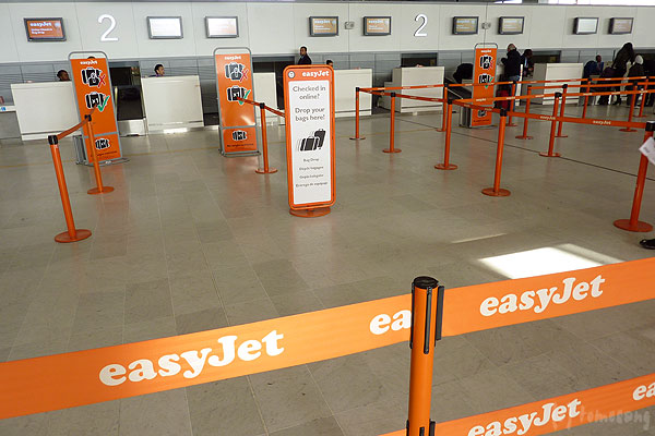 見た事のない航空会社の機材が沢山停まっているのを見ながらターミナル2のeasyJetカウンター到着。