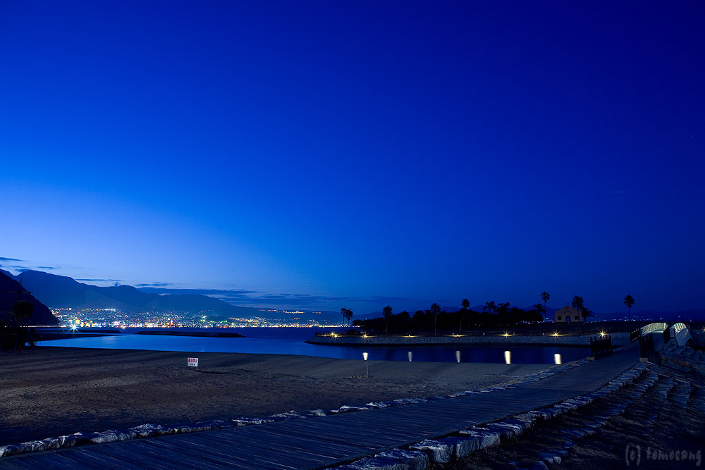 人工島を海側まで行くとデッキになっていて、別府湾と別府市街をベンチに座って眺める事が出来る。