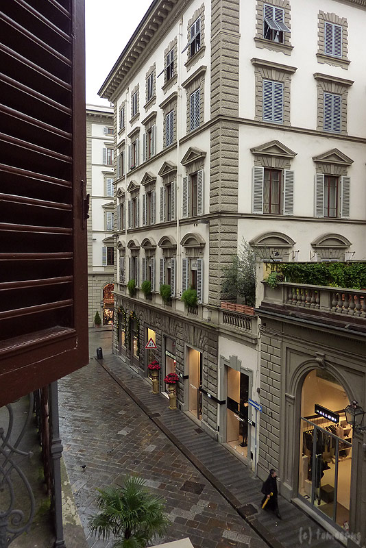朝のフィレンツェを窓から眺める。あまり人は歩いていない。