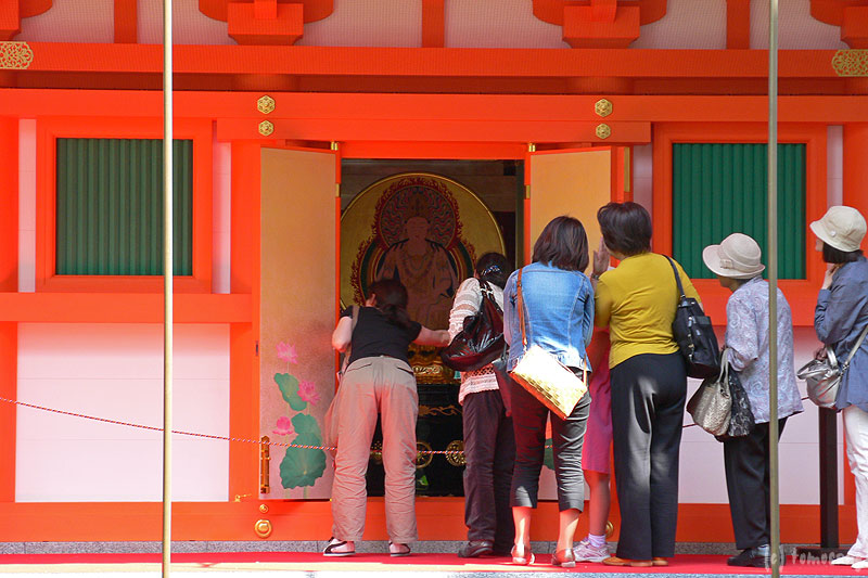 一階四方の扉が開かれ、中の御本尊様を拝む。