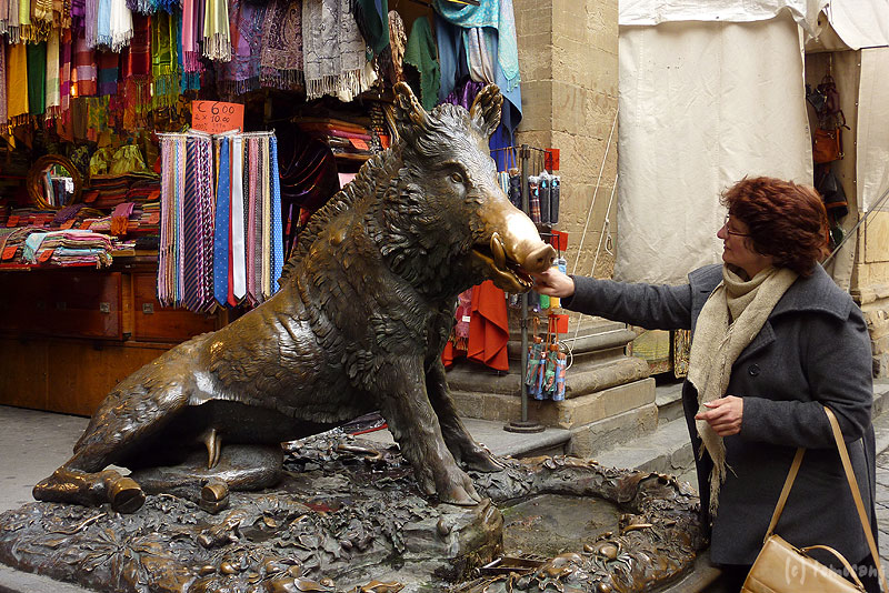 この豚の鼻を撫でるとまたフィレンツェに戻って来れるというおまじない。ローマ【トレヴィの泉】のコイン投げや、ミラノ【ガレリア・ヴィットーリオ・エマヌエーレ2世】の牛モザイク踵回転なんかと同じ。
