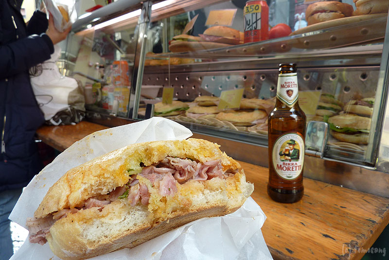パニーノ(3ユーロ)とビール(2ユーロ)