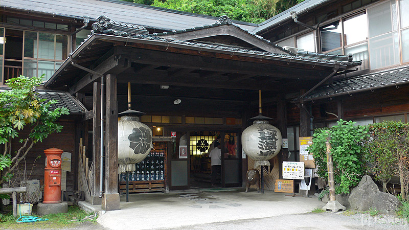 この温泉に入ろうとしていたようだけど、立ち寄り湯の受付終了。ということでさらに奥の地獄温泉へ。混浴なのを知らない模様。