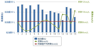 ここ最近のe燃費 [ carlifenavi.com ]グラフ