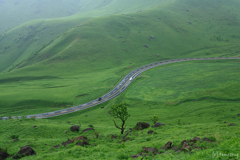 この時期の湯布院~阿蘇にかけての緑の絨毯は非常に美しい。