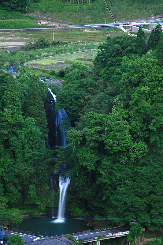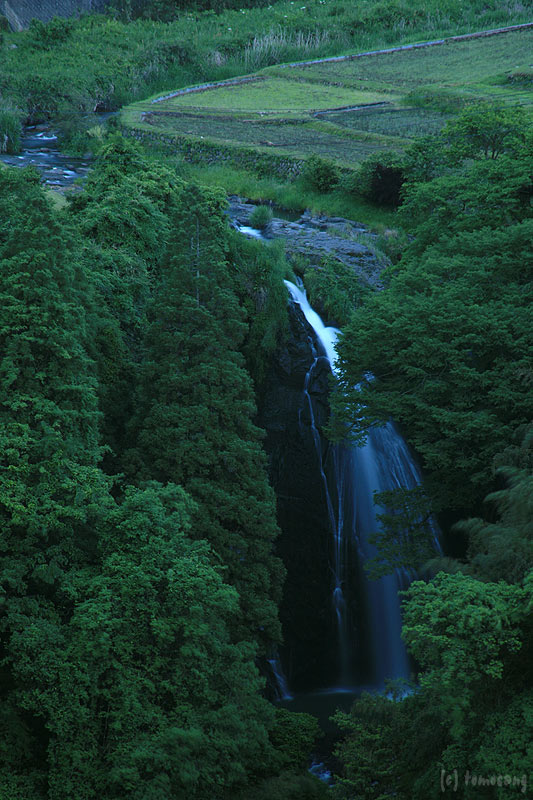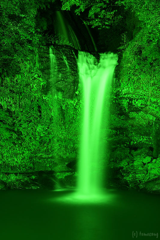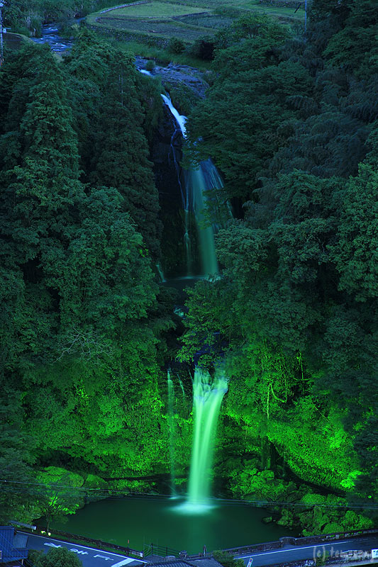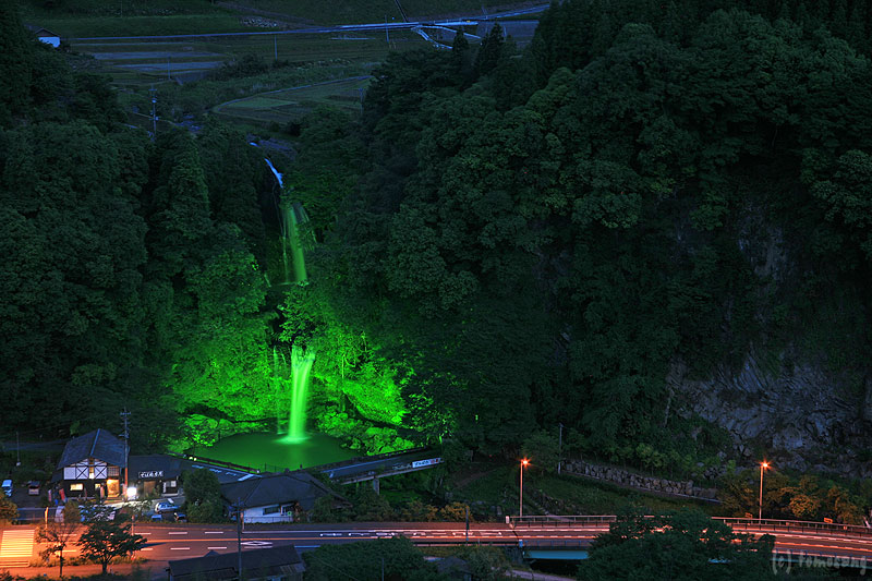 この滝は夜間、緑色の照明でライトアップされる。昔、それを知らずに走っていて、緑色に光る滝に驚いたものだった。ついでだから展望所からライトアップを撮影することにした。