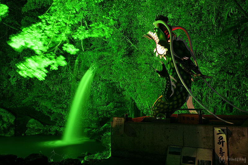 センサー式で、近くに行くと龍に照明が点くようになっていた。