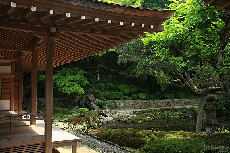 戻って観音堂へ入り、渡り廊下を下ると心字庭園。