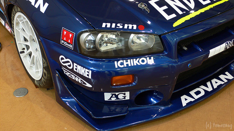 工場は無理でもゲストホールは見学可能。Gianさんが好きなのはR34。R34GT-RのN1車両が展示されているようなので、少しだけ寄ってみた。