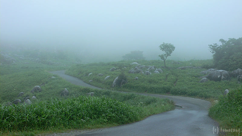 道沿いの光景がやばいくらいに綺麗。霧雨状態なのが余計に雰囲気を良く仕上げてくれている。一眼レフ持って来てないよ↓