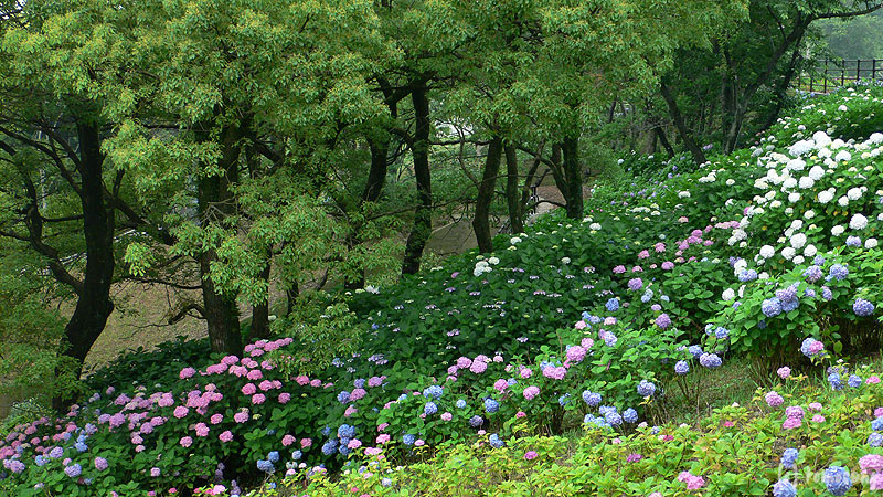 ビンゴ!「あじさい祭り」はまだ始まっていなかったけど、花は満開だった。