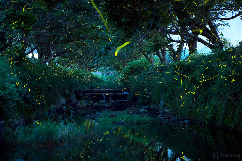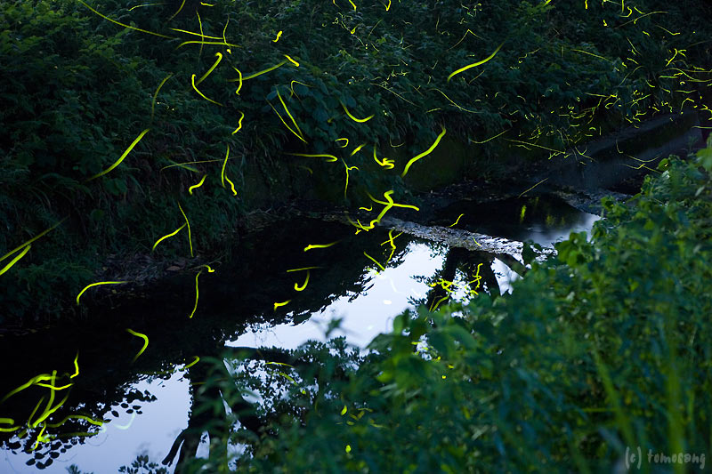ホタルは近付いても全く逃げないからじっくりセッティングをして撮影が出来る。大変なのは暗いのでAFが効かず、マニュアルで撮影しなければいけない事くらい。