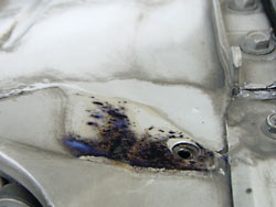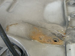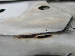 カバーの真下は錆びてきていました。まだ軽症だけど、早めに手を打っておいたほうがよい。