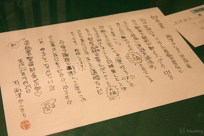 卓上マットには始末書が挟まれていた。