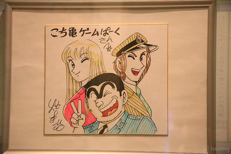 その後ろにはこれまで出たコミックやこち亀グッズが並べられていた。