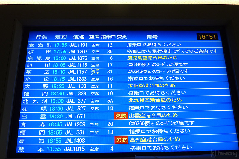 台風接近中なので少し心配していたけど、福岡行は通常運行。大分行きは欠航となっていたのに。