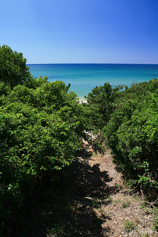 神湊側を望む。白石浜と同じく透明度は高いようだ。潜ったこと無いので、どの程度かは分からない。