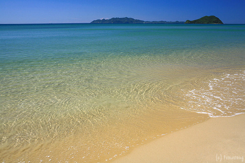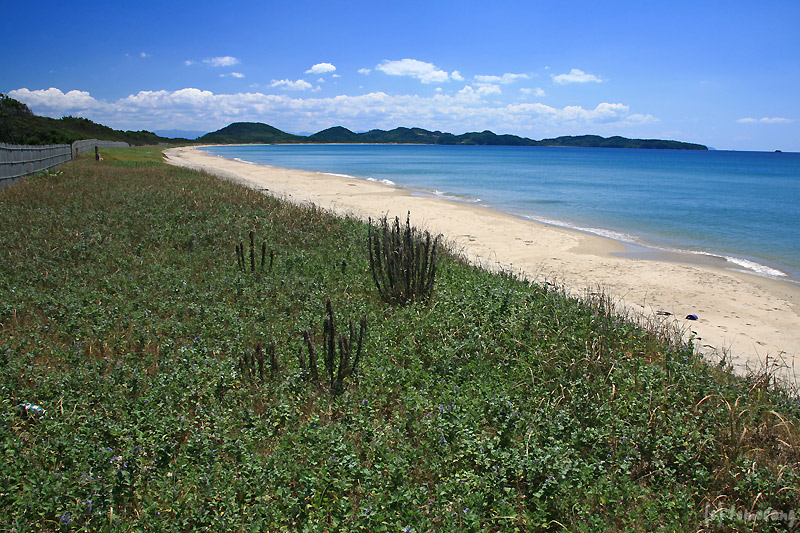 人も入らず、海藻類の漂着も少ない綺麗な砂浜だ。