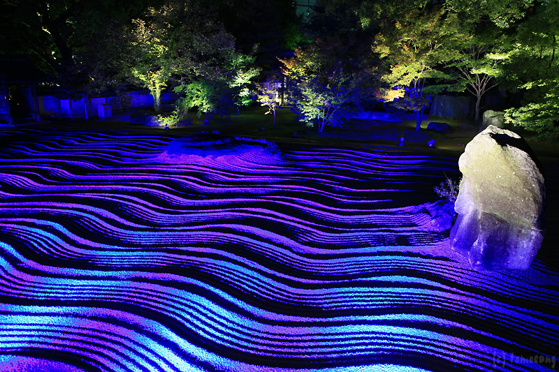 水平に照明を当てることにより陰影を付け、帚目を立体的に浮かび上がらせている。これはこれで綺麗だったけど、昼間の太陽光の下で眺めてみたいと思ったのであった。