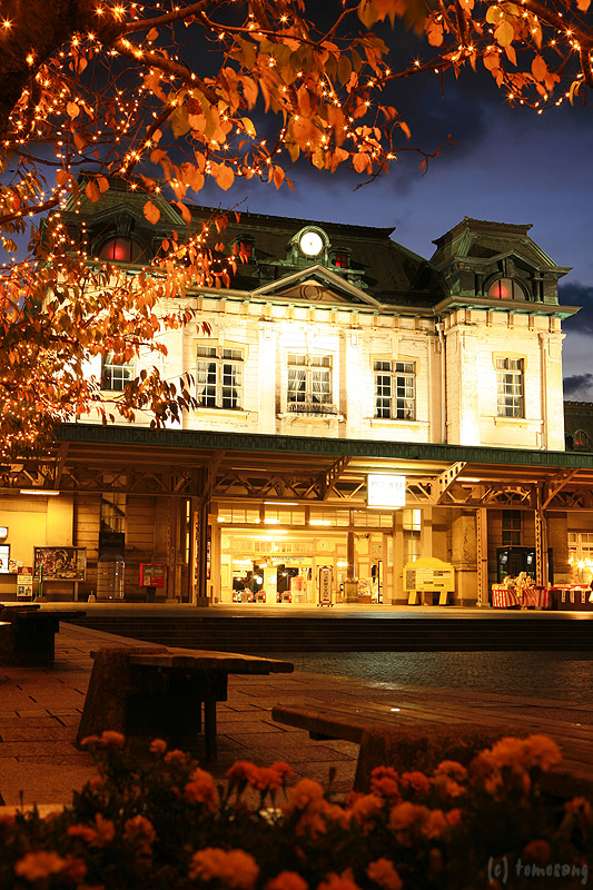 車を駐車場に入れ、まずはJR門司港駅のライトアップからスタートだ。