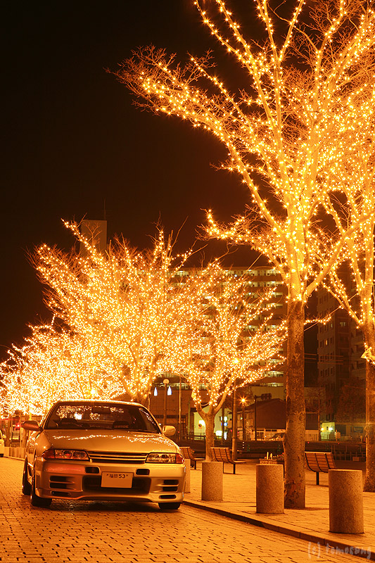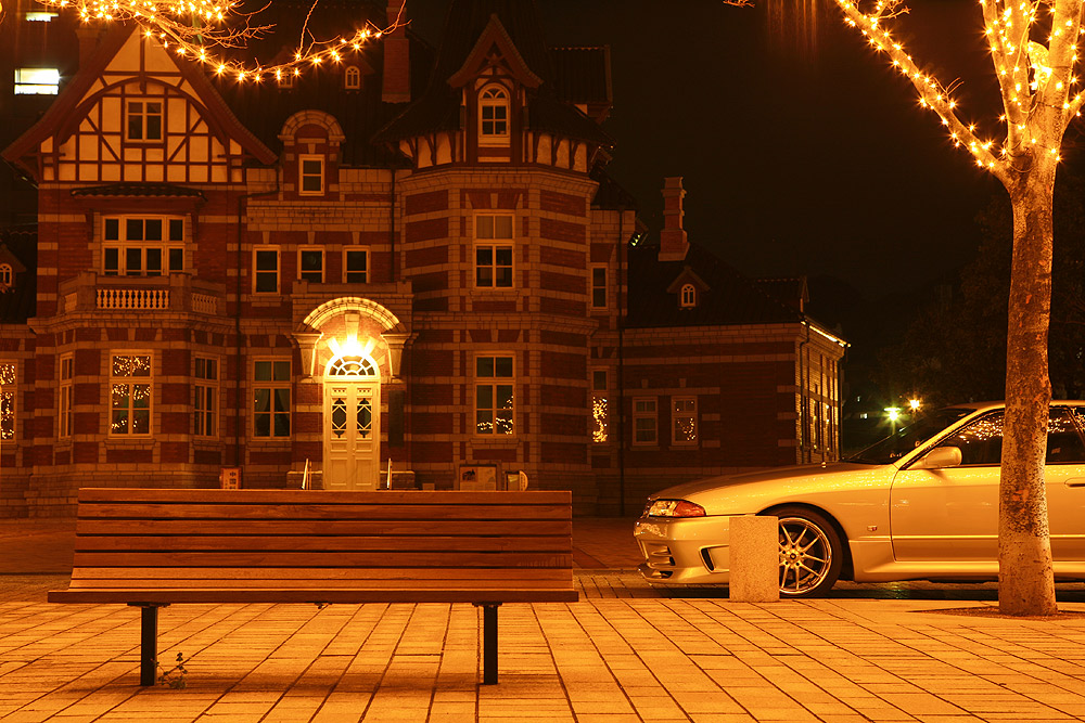 イルミネーションの取り付けられた街路樹が片側にしかないから、駅舎と一緒に撮影しようと思うと、同じアングルになってしまうのであった。