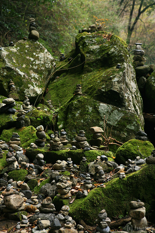 石を数個縦に積んだものが大量に。