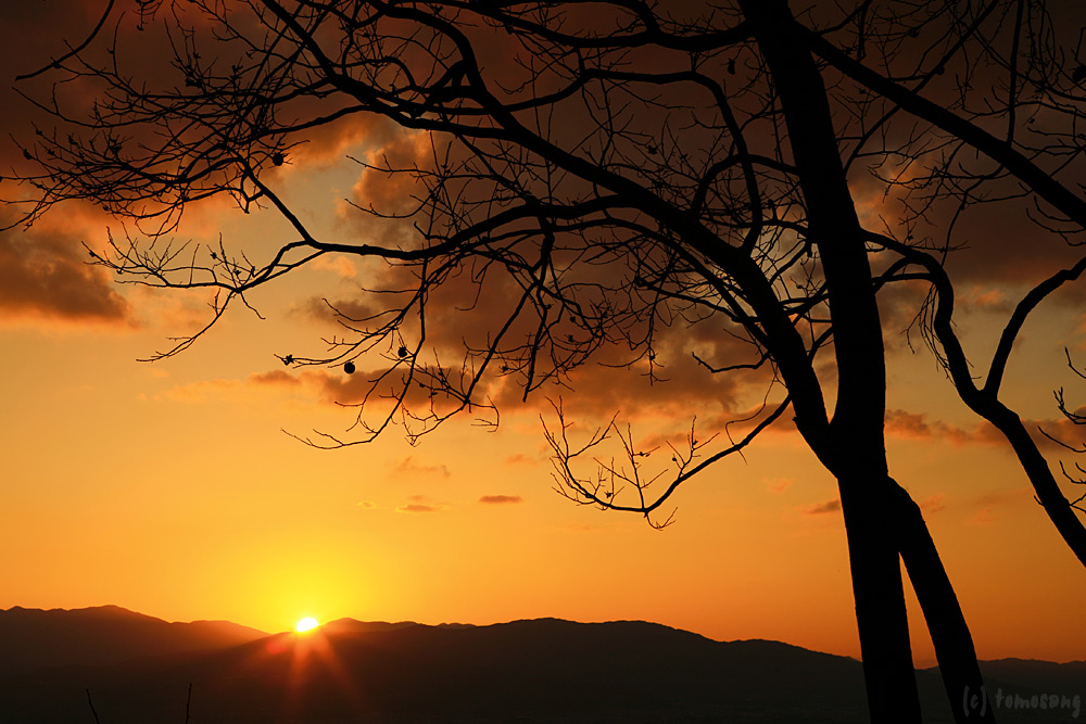 展望場所から目の前に陽が沈む。