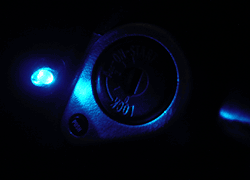 パワーウィンドーよりマシとはいえ、これまたボンヤリとした照明。しかも緑というのが古臭くも感じます。よって綺麗なものに交換。さらに、この部分の照明は、なぜかイルミネーション連動。エンジンより先にライト付ける人はほとんどいないでしょう。鍵穴に目が行く時は、ライトが消えてます。意味ないですね・・・よって、電源を移動させました。