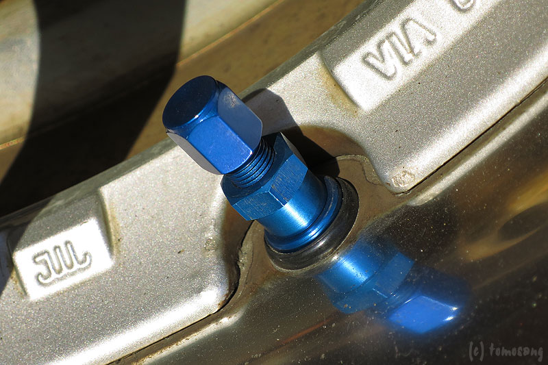 タイヤ交換を行った日は、応急的に転がっていた(?)バルブを付けてもらい帰宅しましたが「青は嫌だ!」