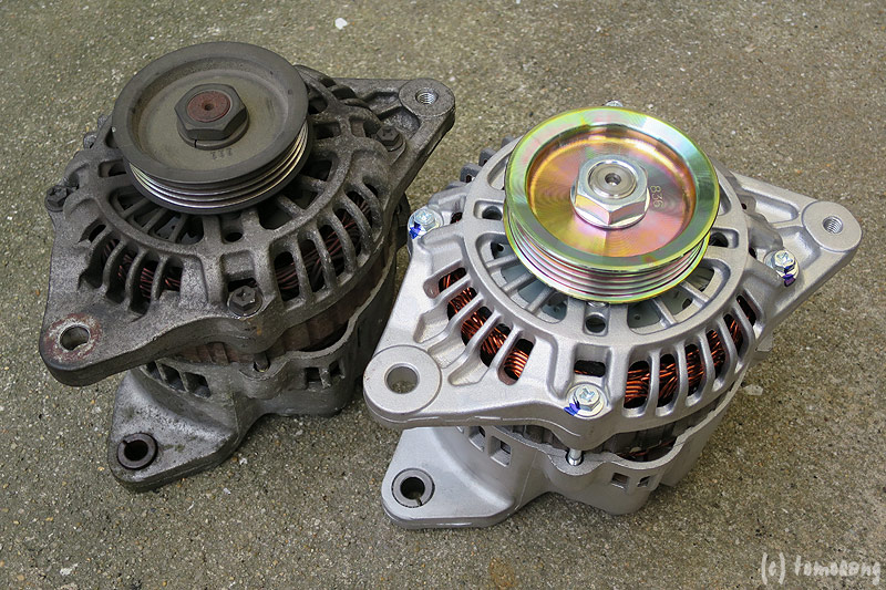 R32、RBのオルタネーターは相互流用出来る場合が多い。タイプMにGT-R用を流用すれば容量アップ(80A →90A)可能。だが、リビルト品購入の場合、同じ品番のコアを購入元に送り返さなくてはならない。