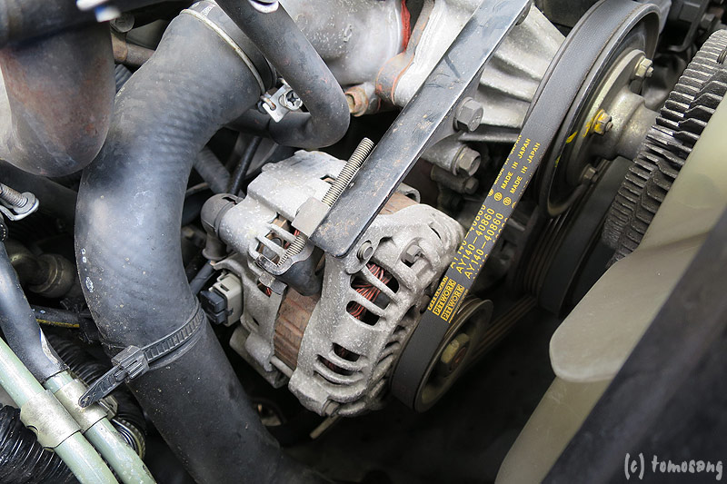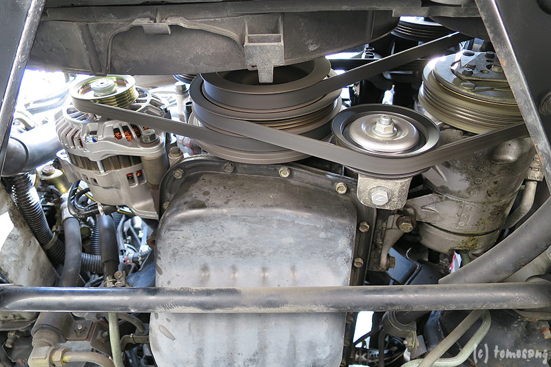 オルタネーターが動くので、手の入れやすい場所に動かすと良い。