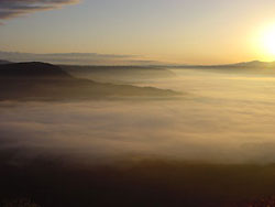 左:デジカメデータによると、9時30分でも雲海はまだこの状態です。いかに強烈だったか、地元テレビ局(カメラにはTKUと書いてあった)の取材が来てました。