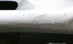 下腹部分なんでほとんど見えないけど、かなり大きくえぐれてしまったので放っておくと次に擦った時にはヒビが入りそうだ。