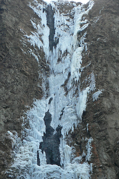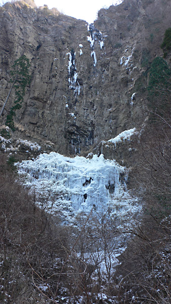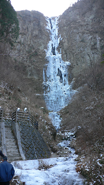 2年前のゴールデンウィークに見に来て「なんだこりゃ」と思ってましたが、この滝は冬に来るべきもの。冬になると、写真のように滝全体が凍り付いてしまいます。(暖かかったので少し溶け始めてたけど)