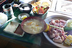 白川水源から熊本側へ500m程走ったところにある「白水の蔵」地鶏定食1730円