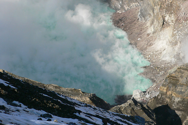 モクモクと上がる湯気、時たま湯だまりが顔を出します。ちなみにマグマだまりは草千里の直下5kmのところにあると先日調査結果が出てました。