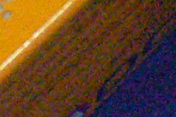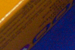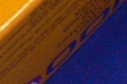 これらは下の画像、等倍データから右下の赤い部分のみをトリミングしたもの。比較すると、感度ごとのノイズ発生具合がよくわかる(等倍で鑑賞する人などいないだろうけど)