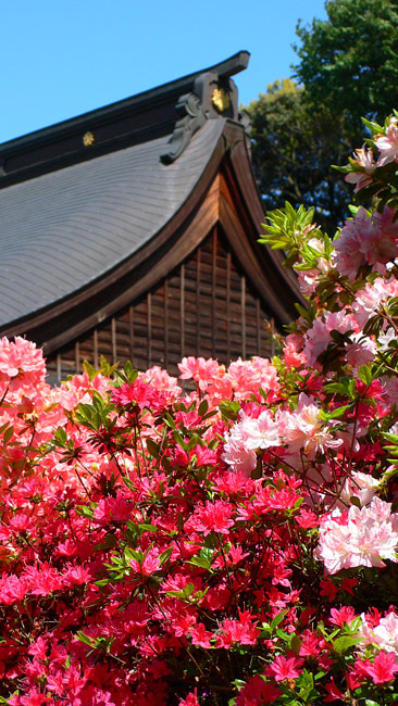 裏に回ると、ツツジが沢山植わっている。虫の羽音が凄かった(苦手)。